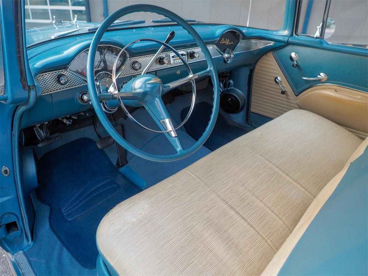 Stepping inside the Bel Air, you'll find a thoughtfully designed interior adorned in a delightful blue shade. The blue interior beautifully complements the exterior paint, creating a harmonious and visually appealing ambiance. The attention to detail can be seen throughout, from the plush seating to the well-crafted dashboard. Every element has been meticulously crafted to provide both comfort and a sense of timeless style.